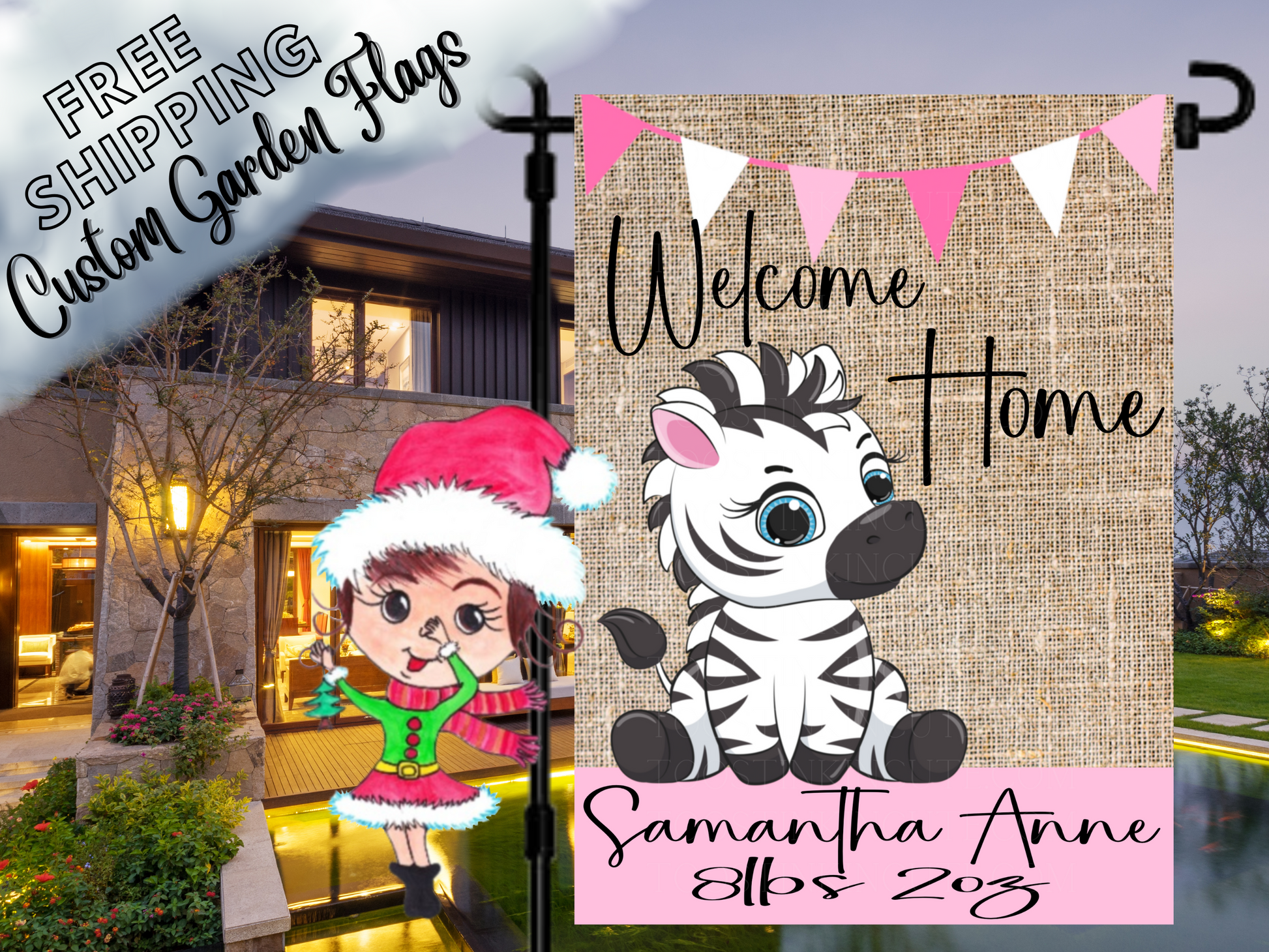 Baby Girl Zebra Garden Flag, Newborn Baby Flag
