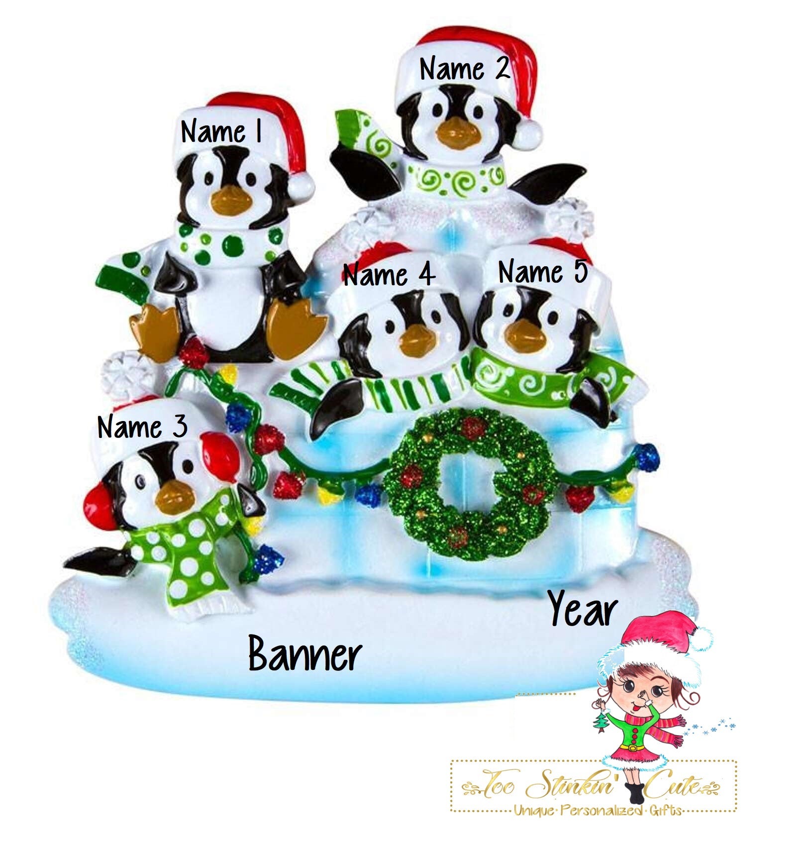 Christmas Ornament Winter Penguin Igloo Family of 5/ Friends/ Coworkers - Personalized + Free Shipping!