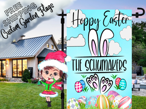 Easter Bunny Flag,Easter Garden Flag,Garden Flag Easter,Easter Yard Decor,Spring Garden Flag,Spring Flag,Easter Family Name Address Flag