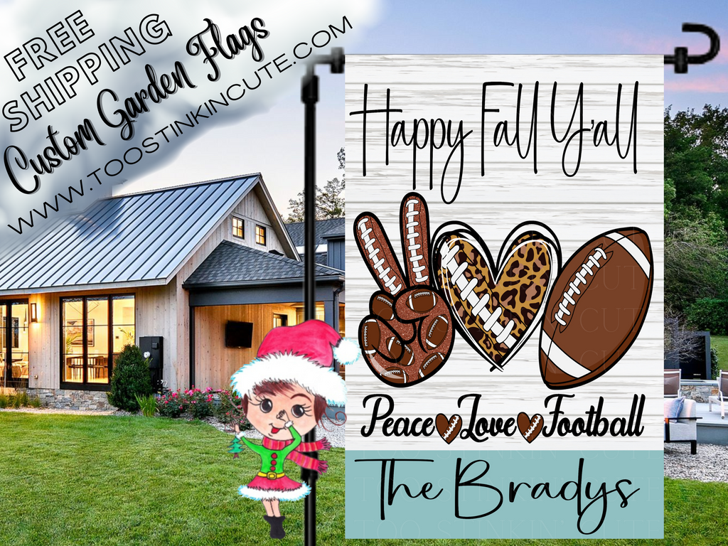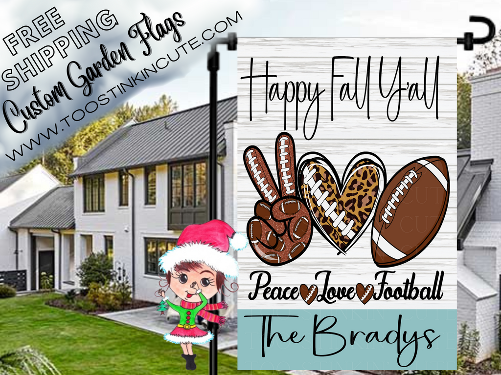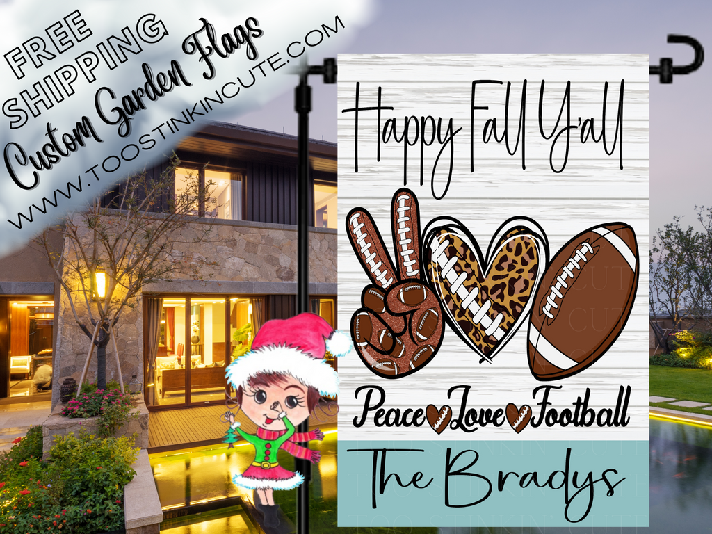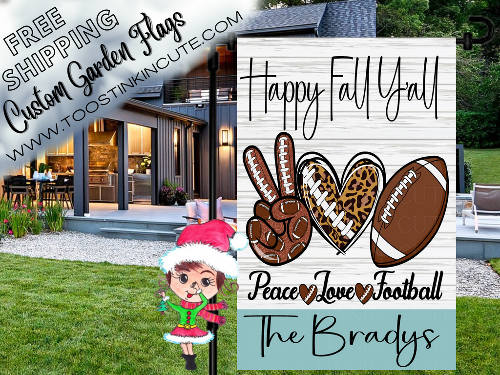 Keywords: Custom Fall Football Garden Flag|Personalized Football Garden Flag|Football Flag|Sports Flag|Football Family|Fall Football|Sports Flag