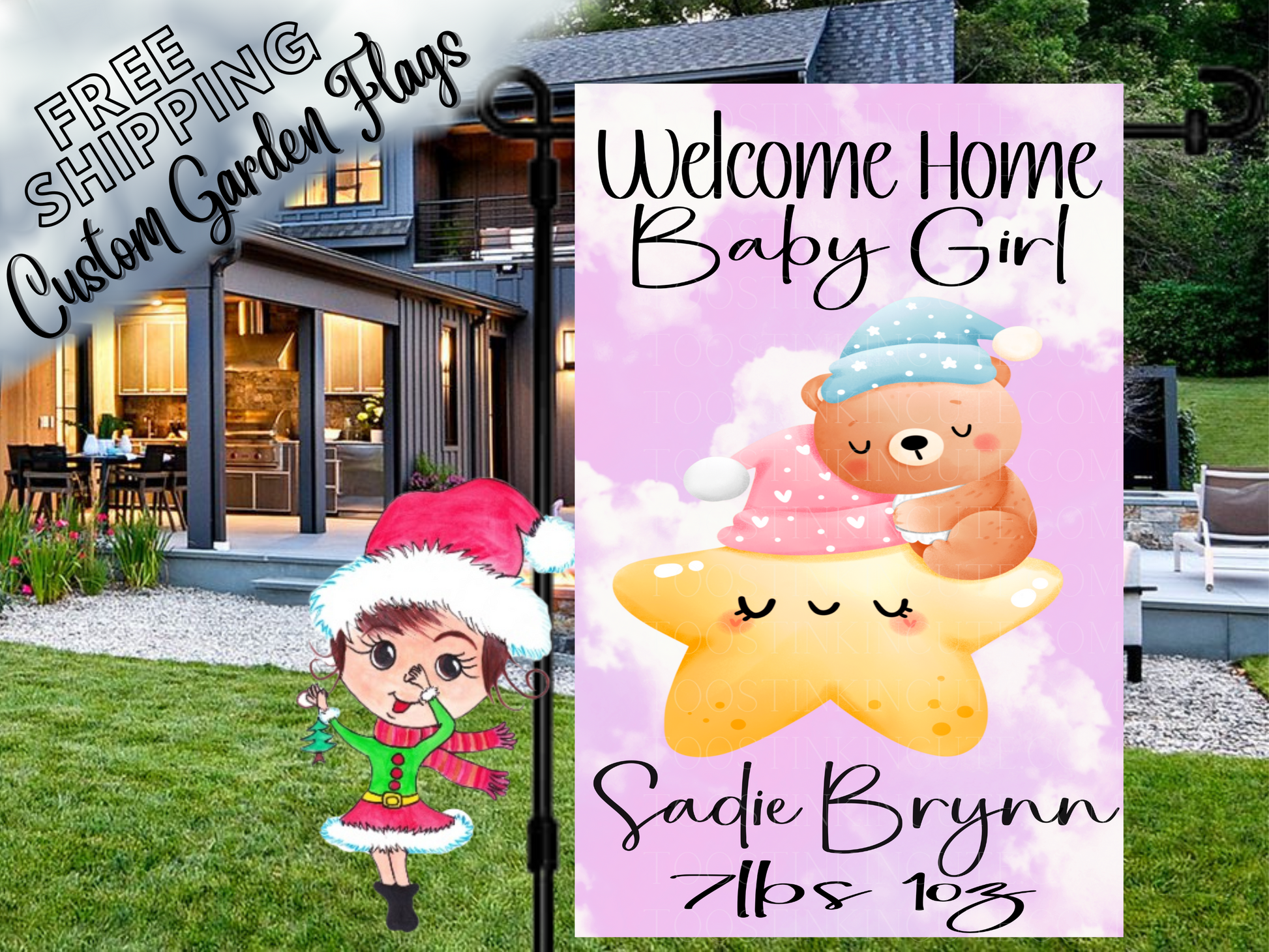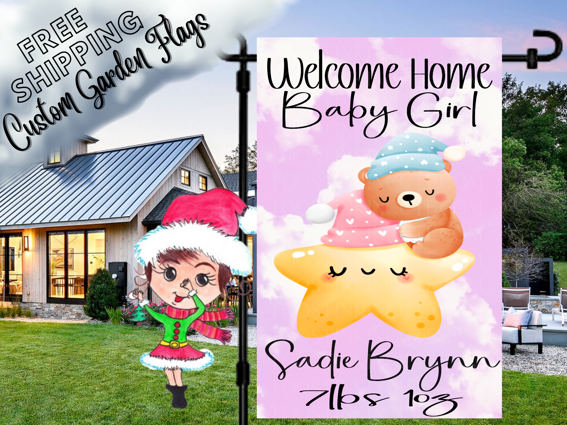 Our custom garden flag is the perfect way to celebrate your new baby and welcome her home. It's a great addition to any garden or yard, and makes a wonderful gift for new moms. You can even personalize the flag with your baby's name and birth weight, making it a truly unique and special keepsake.