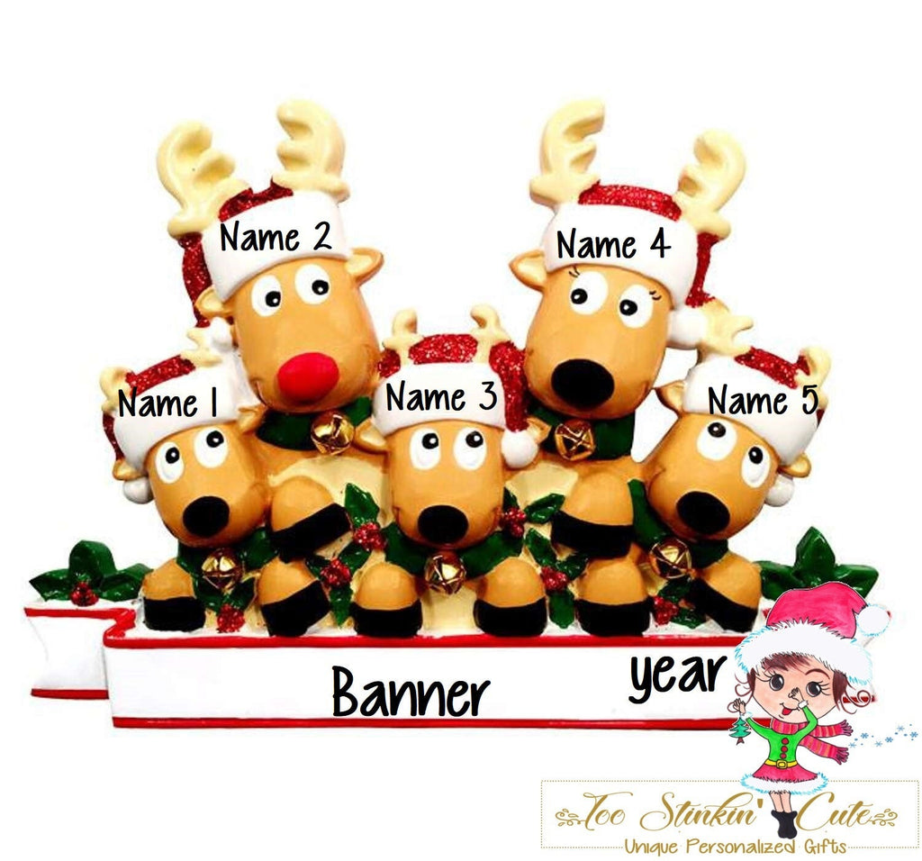Personalized Christmas Table Topper Reindeer Family of 5 + Free Shipping!